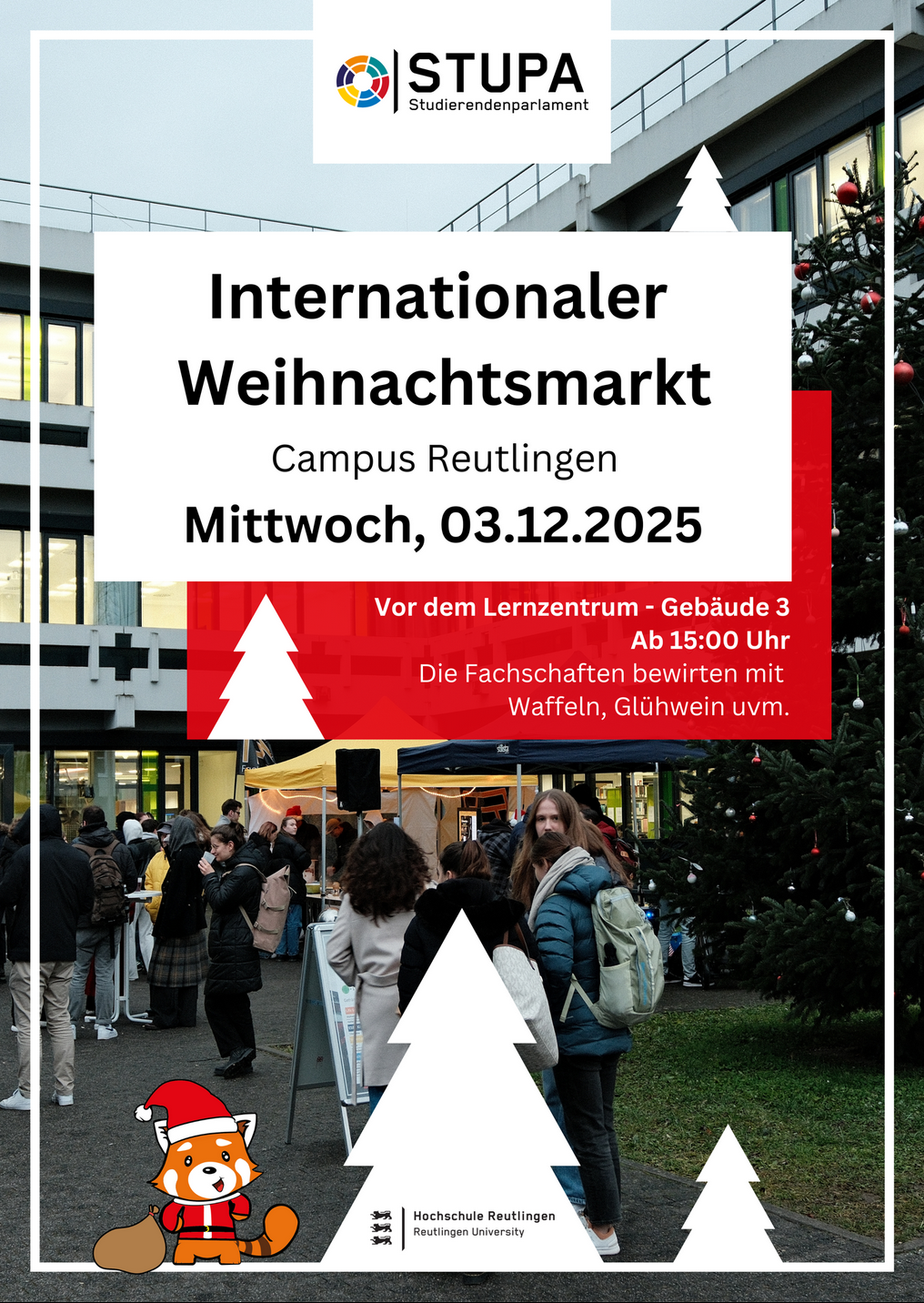Aula Building 6 Alteburgstraße 150, Reutlingen, GermanyLiebe Studierende, wir freuen uns sehr, Sie in diesem Jahr wieder herzlich zu unserem Weihnachtskonzert der Big Band einladen zu dürfen. Wann: Montag, 01. Dezember 2025, 18:00 Uhr Wo: Aula der Hochschule Reutlingen (Geb. 6) Einlass ab 17:30 Uhr. Der Eintritt ist frei! Die Reutlingen University Big Band präsentiert unter der Leitung von Benjamin Himpel Stücke wie „Someday […]
